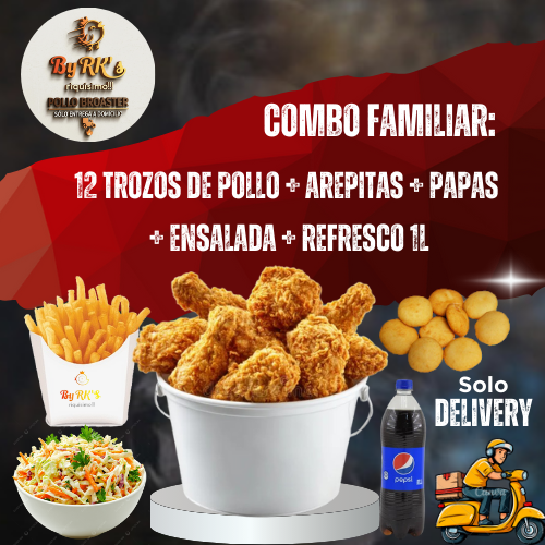 12 trozos de Pollo + Arepitas + Papas + Ensalada + Refresco 1L!🚀